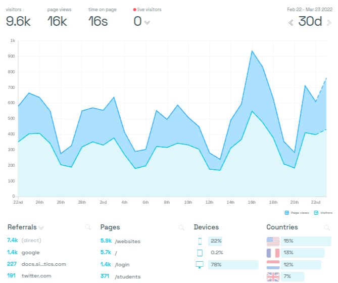 Simple Analytics is a basic web analytics tool that collects essential information about your website's performance. With a focus on privacy, Simple Analytics does not use cookies and bypasses adblockers. Reports can be emailed to you or your clients on a weekly or monthly basis.
