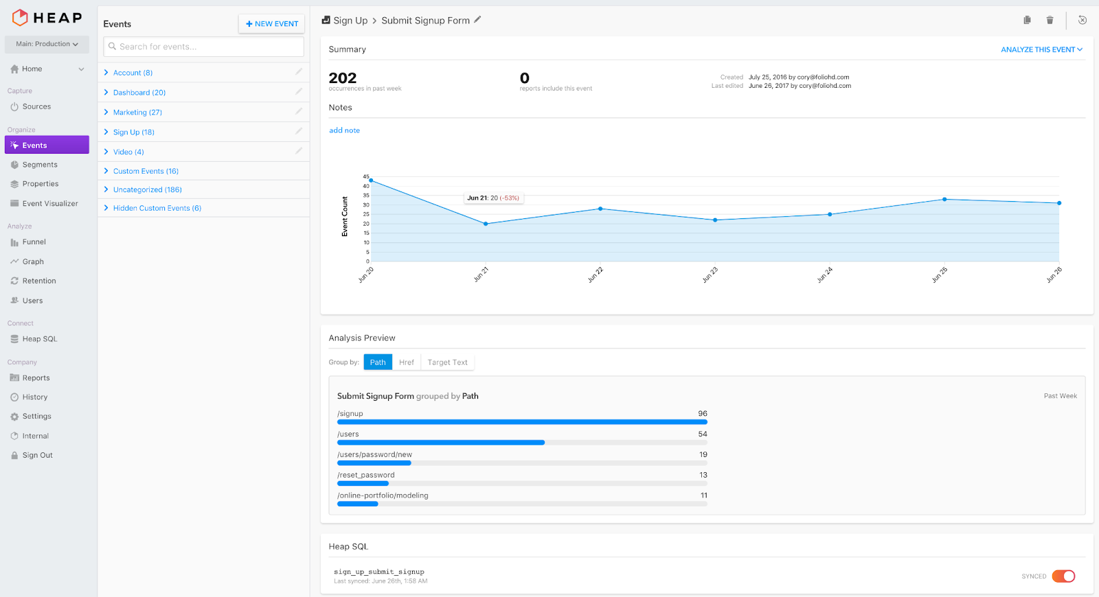Heap Analytics is a powerful behavioral analytics tool that automatically captures all user interactions on your website, including clicks, form submissions, and page views. With Heap's retroactive analytics, you can analyze data without having to set up tracking events beforehand. Heap also offers a wide range of integrations, making it easy to connect with your other marketing tools.
