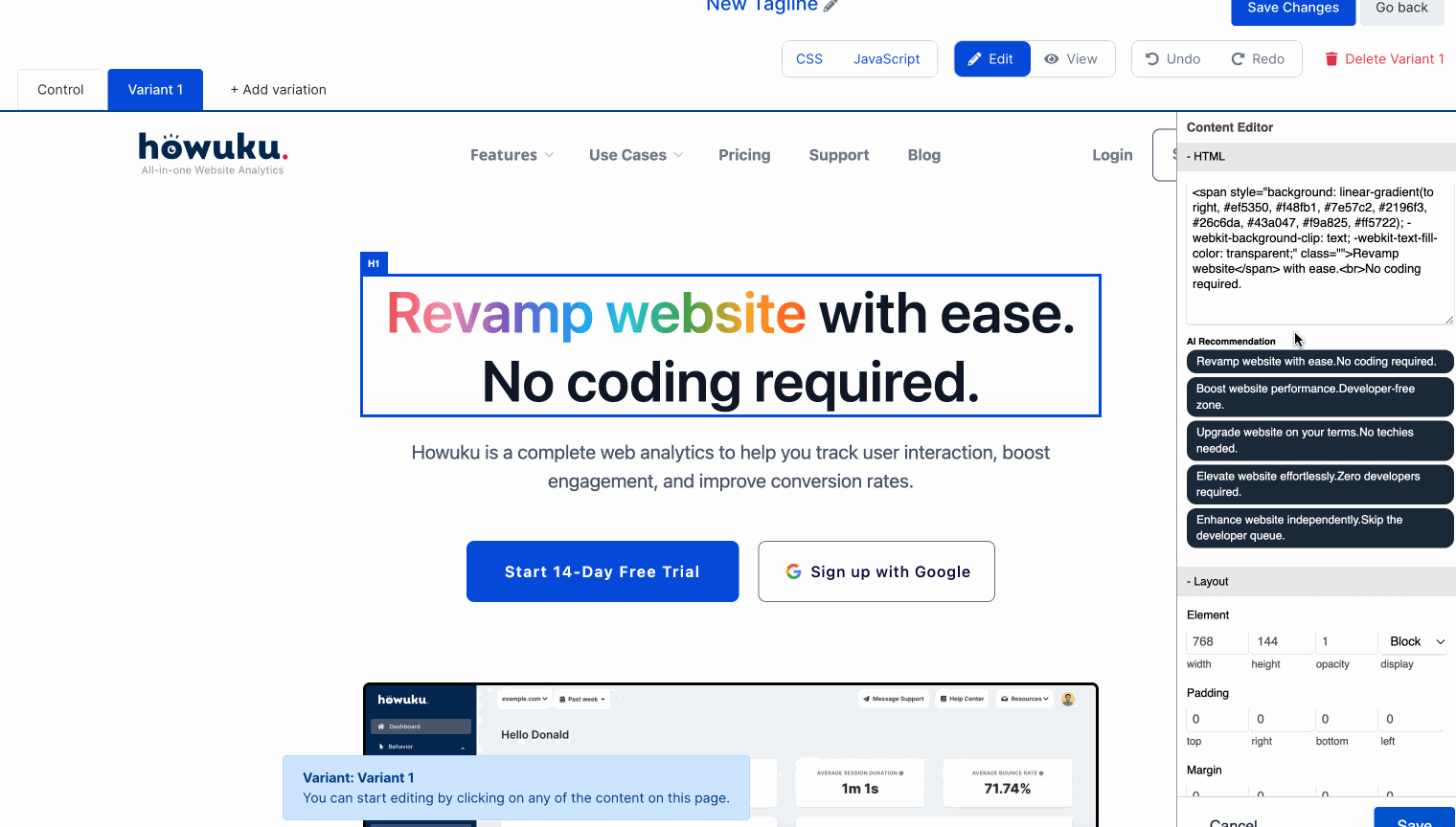 Howuku, an all-in-one online marketing platform, has tapped into the potential of GPT-4 to create a new frontier in A/B testing AI. By integrating GPT-4, Howuku allows marketers to test AI-generated copy against human-written content, streamlining the copywriting process and campaign optimization.
