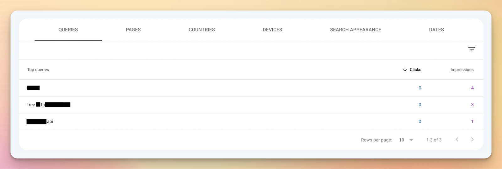 2. Sort by clicks: The default sorting method for the Queries data is by the number of clicks your website received for each keyword. This helps you identify which keywords are driving the most traffic to your site, allowing you to focus on optimizing your content for these high-performing keywords.