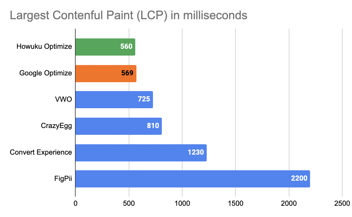 - Followed closely by Google Optimize at 569ms