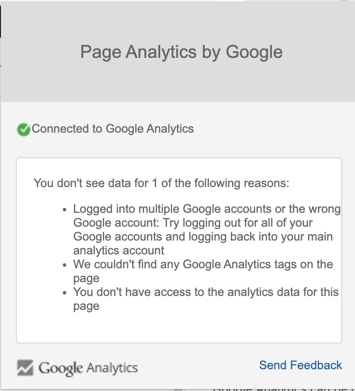 Once you have installed it, go to your website and click on the Page Analytics app on top of your Chrome browser, and it should show that you have successfully installed it.