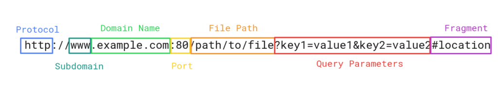 - Query: Additional parameters passed to the server (e.g., ?key=value).