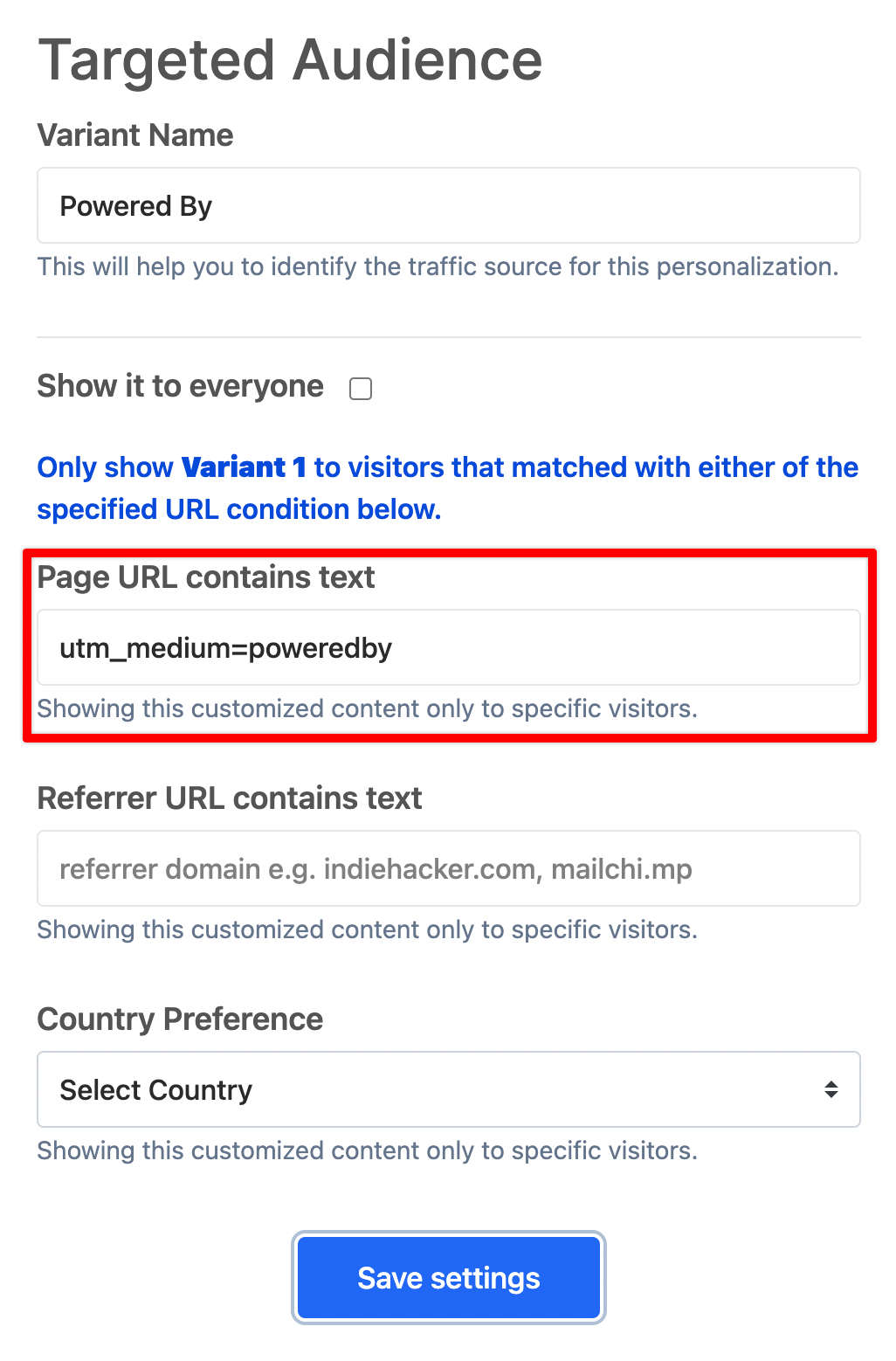 To only show the personalized content to audience that is coming from a specific URL paramter, this way you can target a specific links sent out from your cold email campaign.