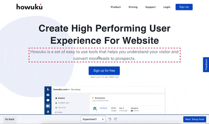 Using Howuku, you can use heatmaps and session recordings to see how your user journeys through your site. You can then use this valuable information to segment your customers, identify stoppage points, and showcase personalized content according to their demographics.
