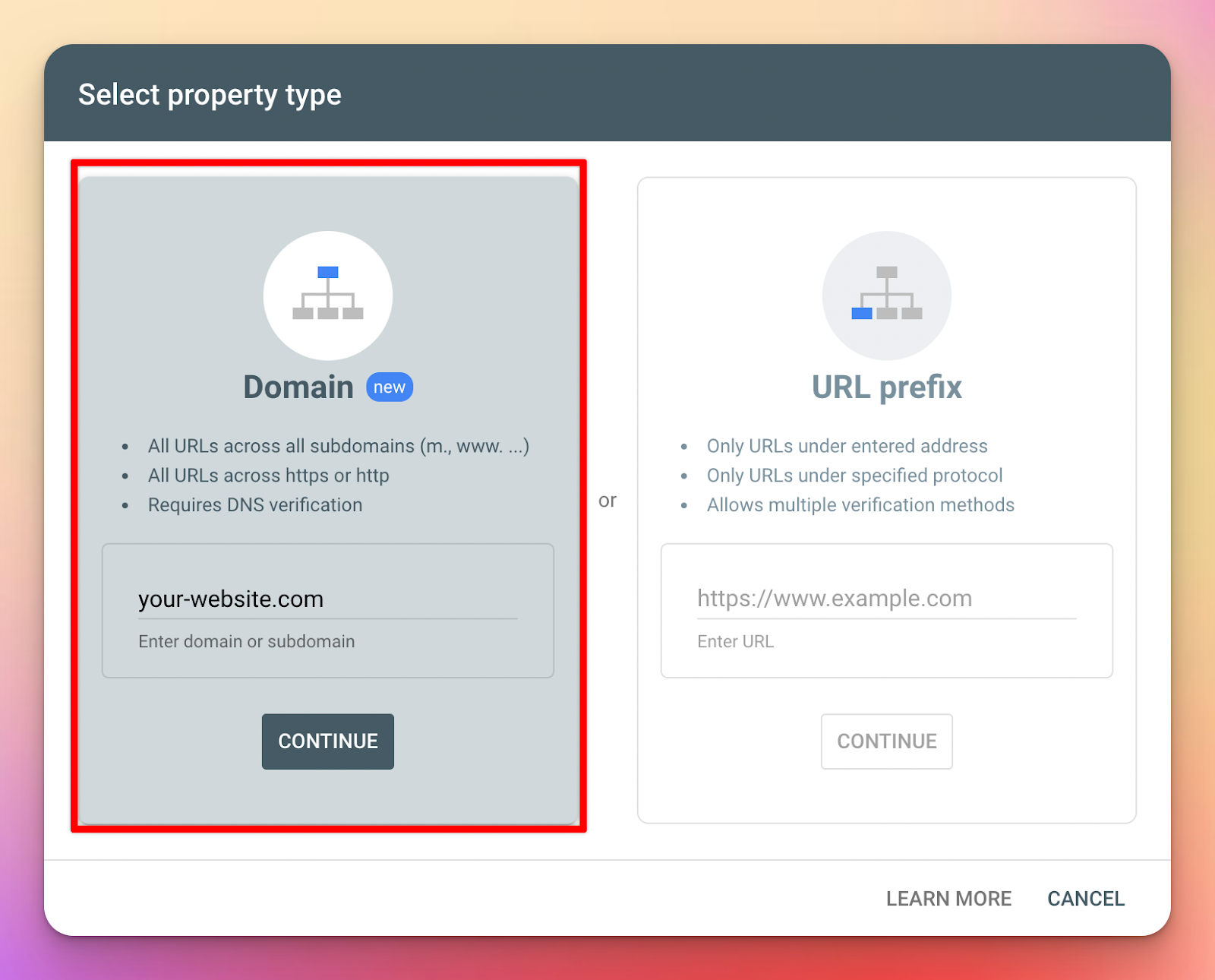 Follow these steps to set up GSC for your website if you haven't already: