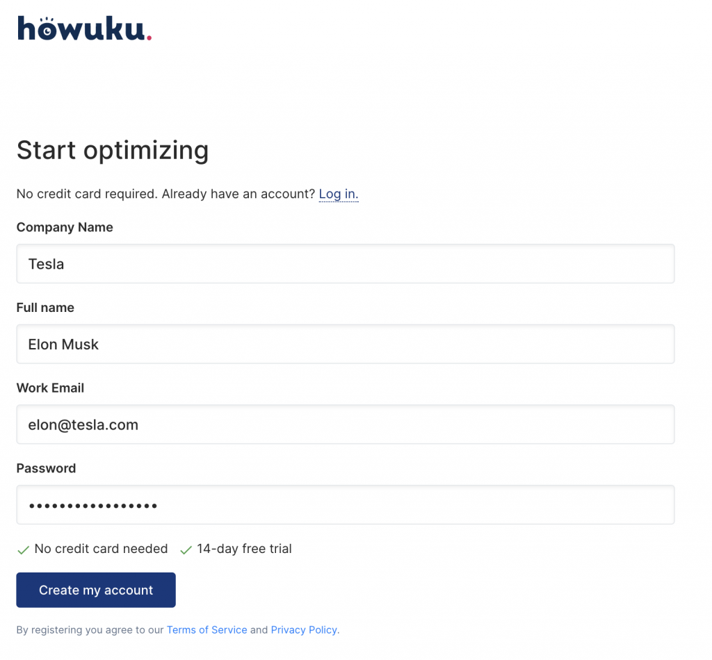 Create a new account or use your existing Howuku account if you already have one.